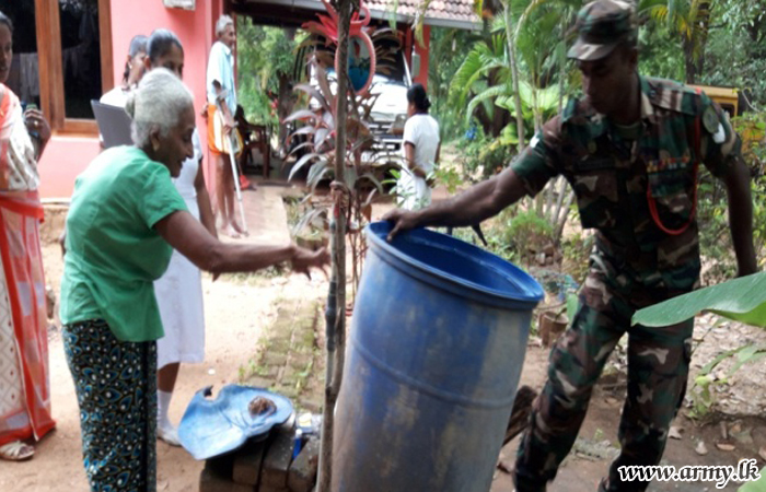 Troops numbering 20 Officers and 300 Other Ranks on the directions of Major General K.P.A Jayasekara, General Officer Commanding, 22 Division inspected more than 250 households in search of mosquito breeding spots and other vulnerable locations.