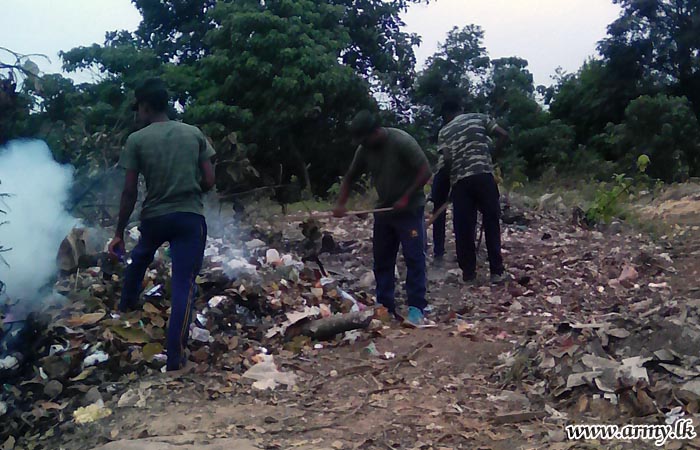 During the 3-day long programme, launched on the directions of Major General Sudantha Ranasinghe, Commander, Security Forces - West, troops of the SFHQ-West piled up garbage at specific locations and took steps to either bury the garbage or dispose it methodically after separating all pieces of garbage.