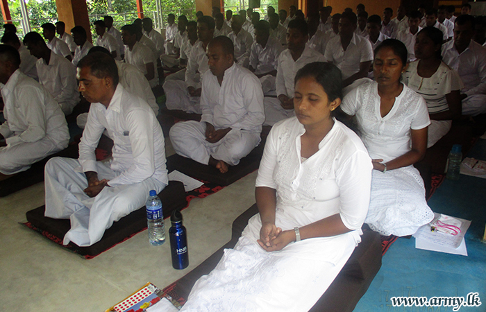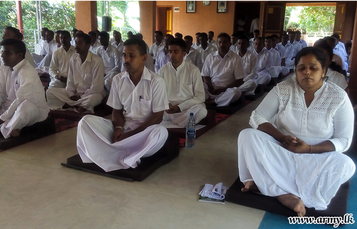A project that has been devised by the Directorate of Psychological Operations at the Army Headquarters to elevate spiritual standards as well as mental peace among hardworking tri-service Officers and Other Ranks, had one more meditation session organized at Kanduboda, Bawunseth Siyane International Vipassana Bhavana Centre for two days. (April 29 and May 02)