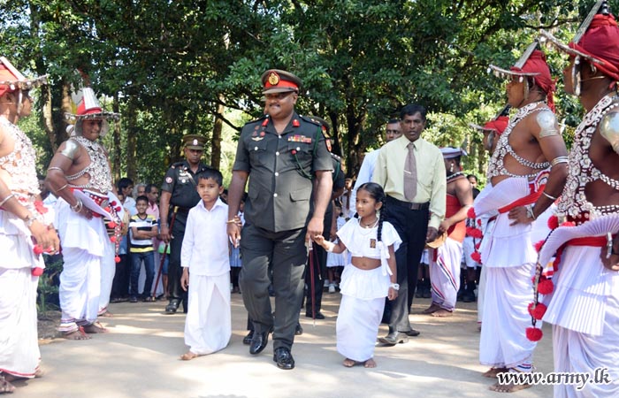 Centre Commandant, GW, Deputy Centre Commandant, GW, Mr Premasiri, Manager at Teachers’ Training Centre, Educational Zone, Kalawana, Mr Anura Gamarachchi, Principal, Officers, Other Rankers of the Regiment, students and their parents, villagers and a gathering of invitees attended the day’s event.