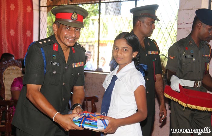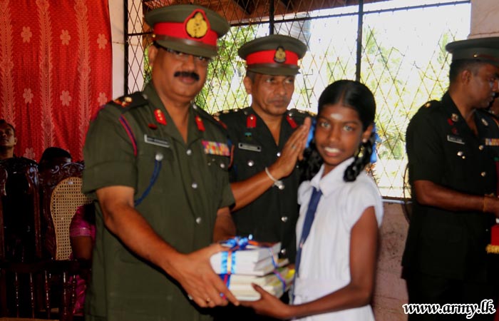 Major General Ajith Kariyakarawana, Commander, Security Forces -Kilinochchi (SF-KLN), graced the occasion as the Chief Guest and distributed those books and stationeries among students.