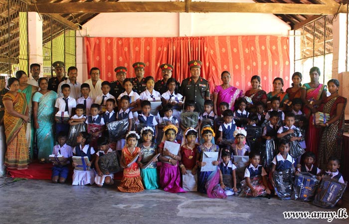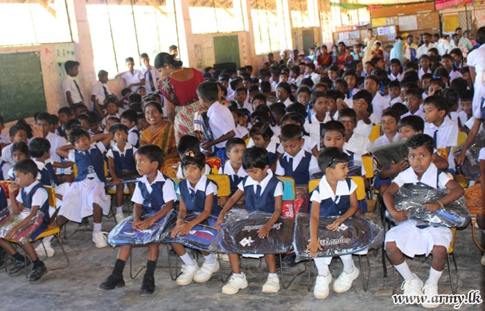 The Principal, General Officer Commanding ,65 Division, Major General Sarath Weerwardhana, Brigadier General Staff, Security Forces -Kilinochchi, Brigadier Jagath Rathnayaka, Officers of the 20 (V) VIR, teachers and all students at Skandapuram Government Tamil Vidyalaya were present at the simple ceremony.