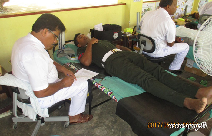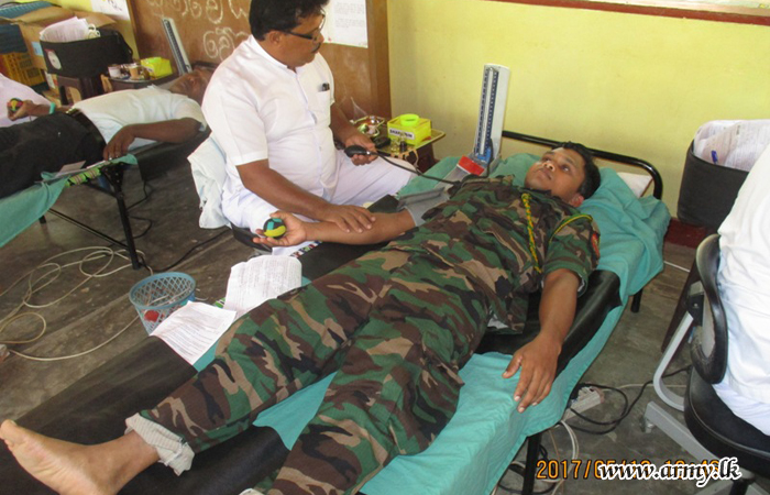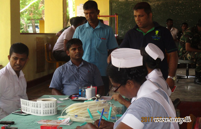 Troops of the 12 Division under the Security Force Headquarters - Central (SFHQ-C), together with the support of members of the ‘Divineguma Gramiya Praboda’ association held a blood donation campaign at Tissapura Kanishta Vidyalaya, Hambantota on Saturday (13). A group of Army personnel started the programme before civilians joined the donation.