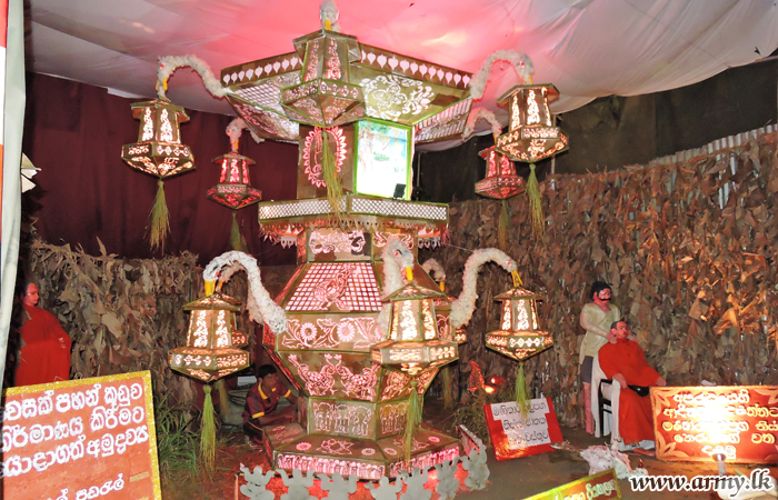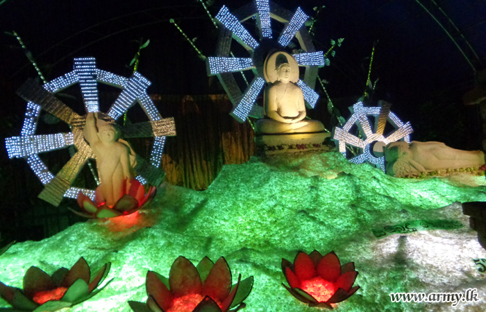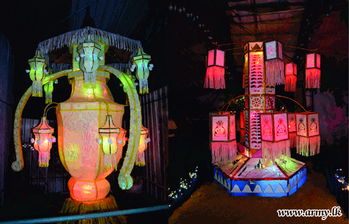 53 Division Headquarters and its Brigades on the instructions of Major General Dushan Rajaguru, General Officer Commanding (GOC), 53 Division, put up a series of decorative Vesak arrangements in front of the Divisional Headquarters premises in Inamaluwa, Dambulla during the festival season.
