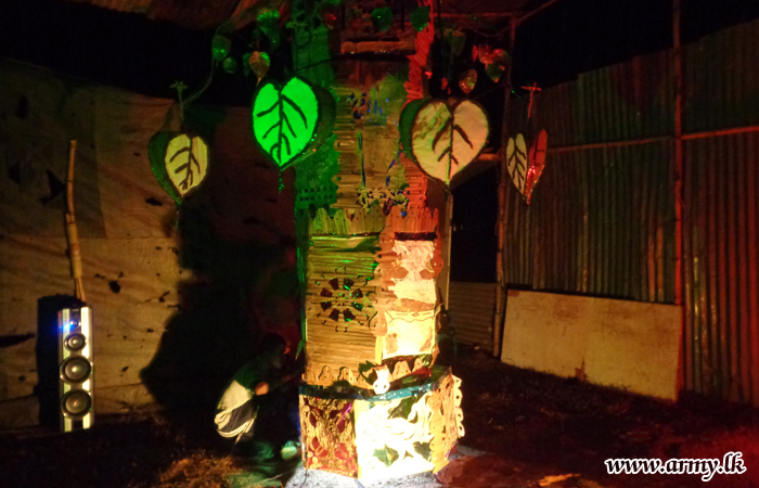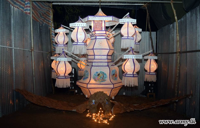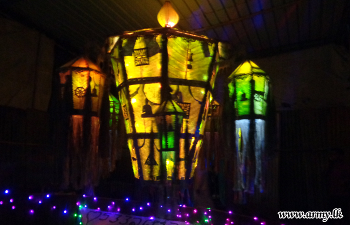 Troops serving under Security Force Headquarters - Wanni celebrated Vesak by displaying lanterns, staging devotional song programmes and conduct of Vesak Dansel, etc.