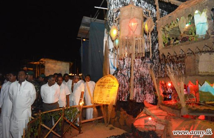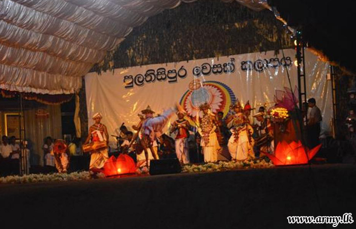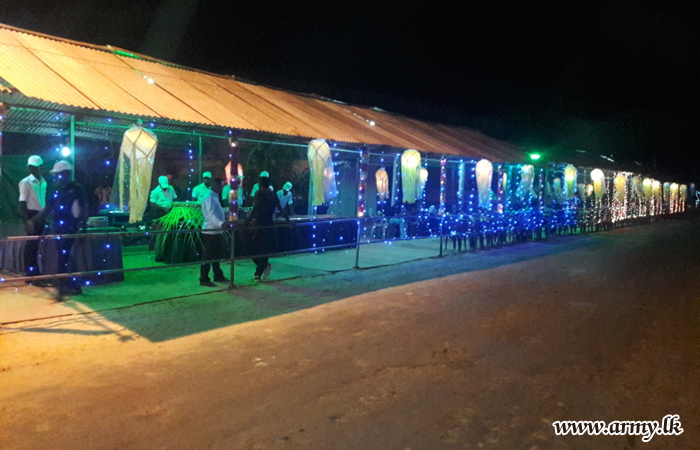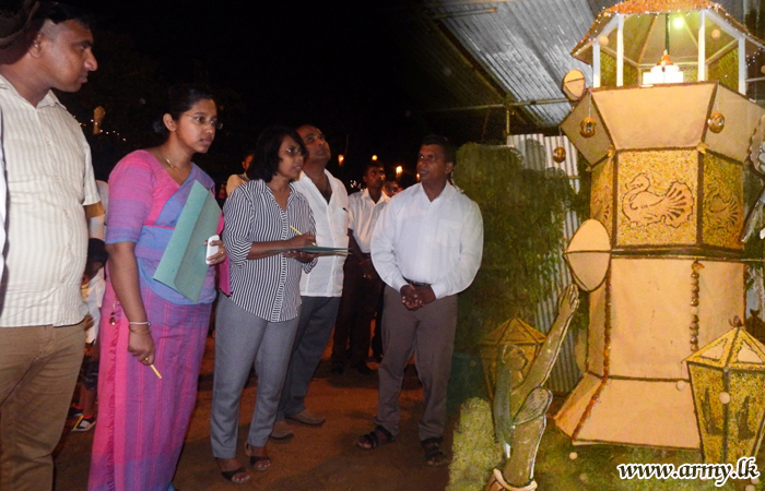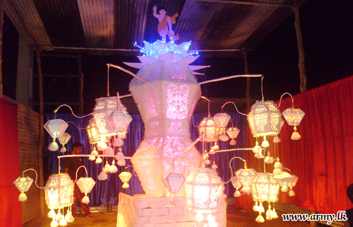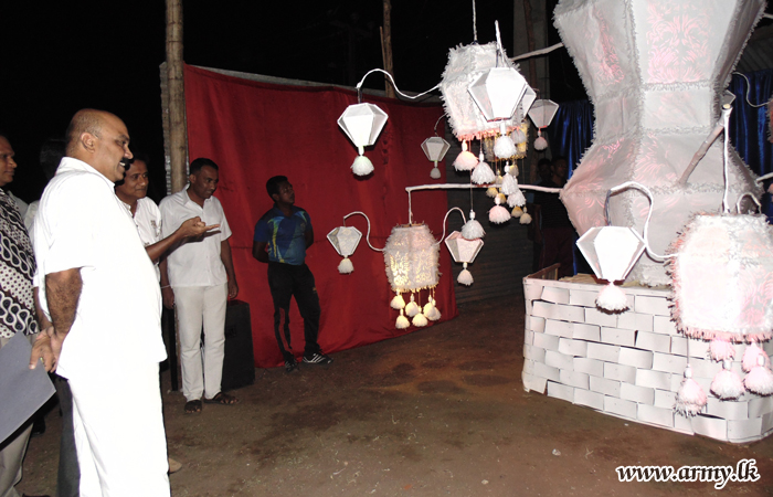 Major General Nandana Senadeera, Commander, Security Forces - East as the Chief Guest opened the display of Vesak lanterns at Welikanda and the Vesak zone at Pulathisipura, Kaduruwela. 23 Division and FMA - E troops supported the conduct of Vesak zone at Kaduruwela. It included devotional song concerts, Dansels and display of a large number of lanterns.