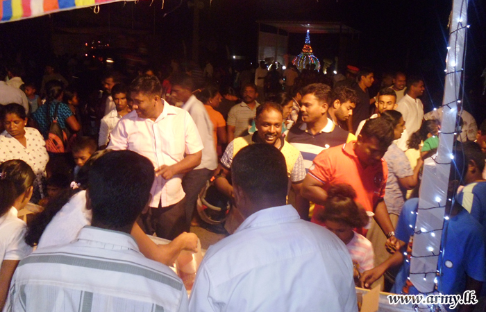 The arrangement, as one more programme of the series of Vesak commemorative events, organized by the SFHQ-KLN, was attended by Major General Jagath Gunawardena, General Officer Commanding, 57 Division, 571 Brigade Commander, 9 VIR Commanding Officer and several Other Rankers.