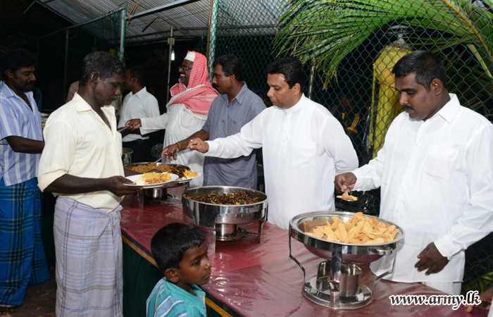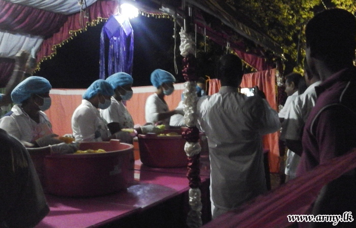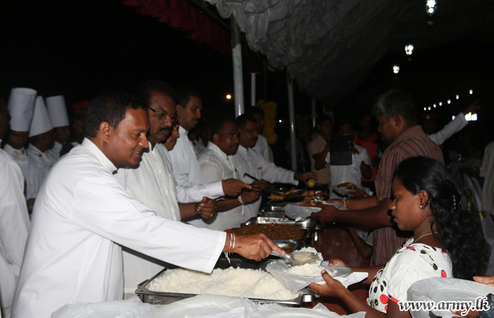 Troops of the 55 Division of the Security Force Headquarters - Jaffna (SFHQ-J) conducted a grand Dansela (free eatery) for all communities in Kaddaikadu area, close to the 55 Divisional Headquarters premises on Thursday (11) and it was opened by Brigadier Aruna Muhandiram, General Officer Commanding, 55 Division, as the Chief Guest of the day. Religious dignitaries, Brigade Commanders, Commanding Officers and several Police Officers were present at the occasion.
