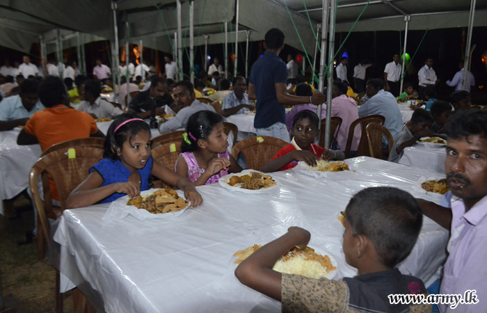 Major General Ajith Kariyakarawana, Commander, Security Forces - Kilinochchi, attending the occasion as the Chief Guest participated in the offer of meals and distribution of gift parcels among 30 adults, resident in the Elders’ Home. In addition, several inmates in appreciation of the treat volunteered to sing a couple of songs during the interaction and made the occasion interesting.