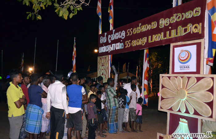 In line with the thematic ‘Yapa Patunai Daham Amavai 2017’arrangement, troops of the 551 Brigade organized a 'Vesak Dansela' for all communities in 551 Brigade area on Vesak day (10) at the 551 Brigade Headquarters premises.