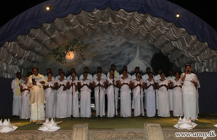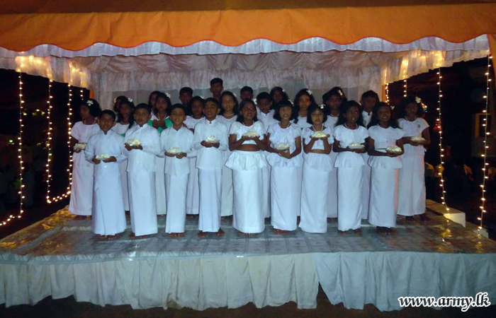 Under the guidance of the Commander, Security Forces - Kilinochchi, Major General Ajith Kariyakarawana, the programmes continued under the theme, ‘Peaceful Vesak Asiriya for Kilinochchi people’.