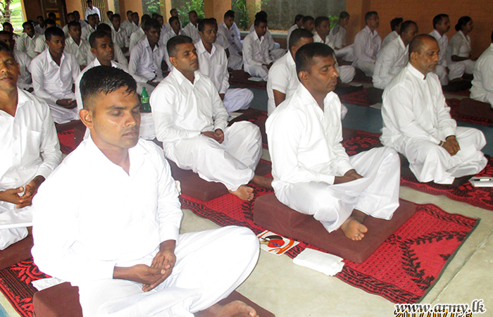 A programme that has been devised by the Directorate of Psychological Operations at the Army Headquarters to elevate the spiritual standards as well as mental peace among hardworking service officers and other ranks, had one more meditation session at Kanduboda, Siyane International Vipassana Bhavana Centre on Friday (30).