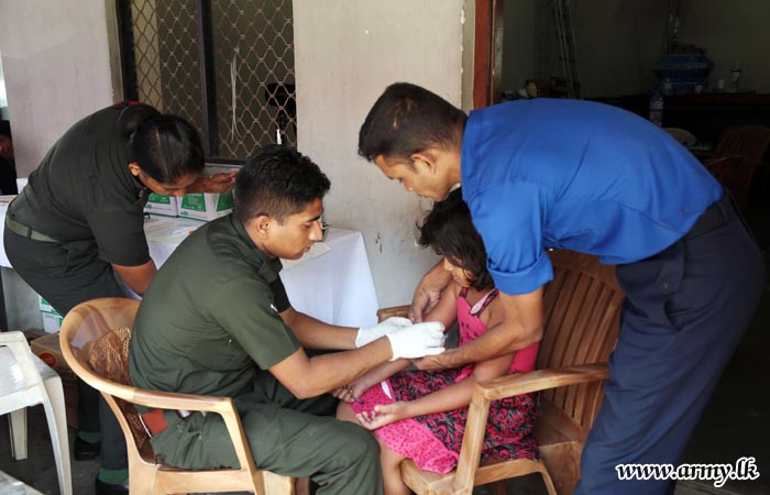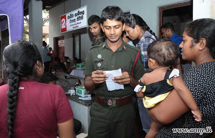 HE the President during a sudden visit he made recently to the Negombo Hospital found that facilities for Dengue patients were not adequate and requested Army support for enhancement of laboratory and ward facilities. Promptly responding, Army and Navy Commanders within a matter of 3 - 4 days set up two extra wards in the premises and instructed Corps of Engineer Services (CES) and SLAMC troops to take necessary action and equip the wards with medical accessories, nurses and all other paraphernalia as soon as possible.