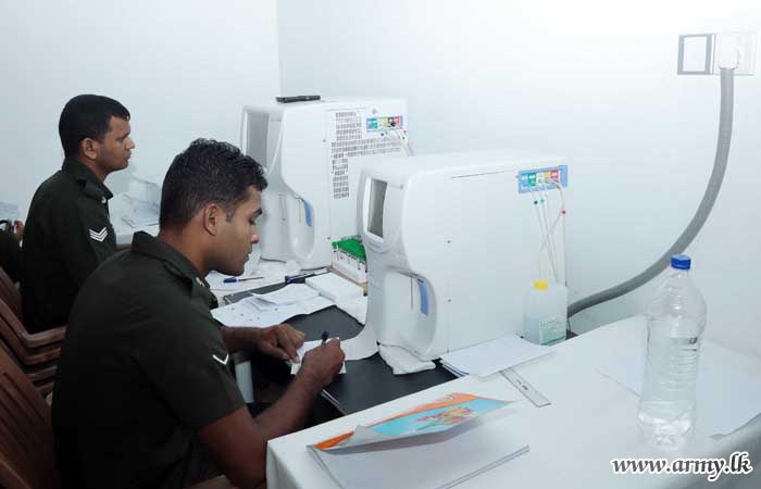The Army with the support of Navy personnel with funds, provided by the Presidential Secretariat within a matter of 2 - 3 days erected this makeshift laboratory to assist medical authorities at the Negombo Hospital as incidence of Dengue has dramatically increased in the areas.