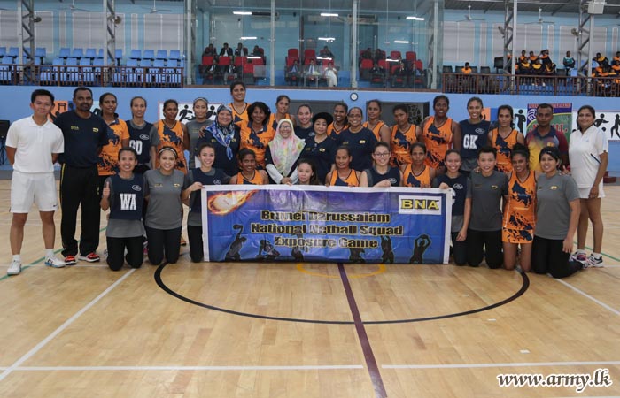 A friendly exhibition match between the woman netball players of the Sri Lanka Army and Brunei National players took place Thursday (27) evening at Panagoda Indoor Stadium.