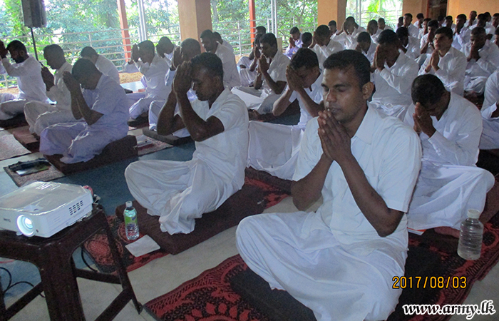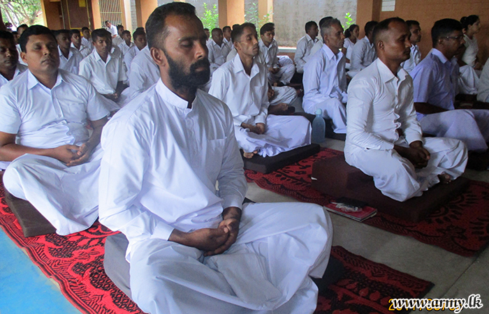 A programme that has been devised by Directorate of Psychological Operations at the Army Headquarters to elevate the spiritual standards as well as mental peace among hardworking service Officers and Other Ranks, had one more meditation session at Kanduboda, Siyane International Vipassana Bhavana Centre on Thursday (3).