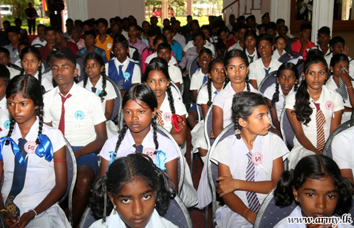 At the invitation of the Commander, Security Forces - Kilinochchi (SF-KLN), Major General Ajith Kariyakarawana, members of the Negombo Rotary Club initiated the charity programme for the benefit of Kilinochchi students.
