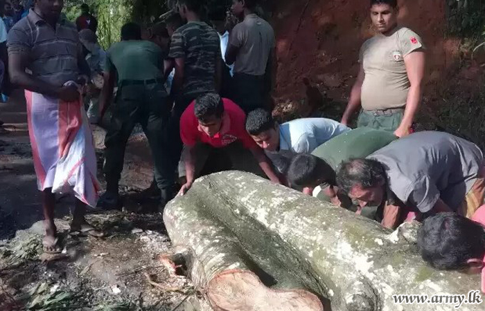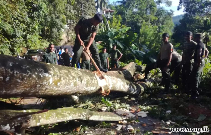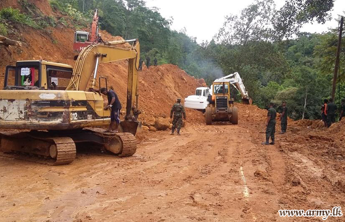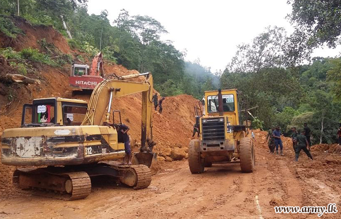 Similarly, a team of 8 GW troops on Saturday (9) cleared huge earth mounds that had fallen on the main road, Ratnapura - Wewelwatta, near Aandaella and facilitated the movement of traffic after a couple of hours.
