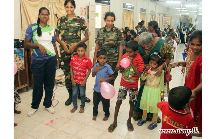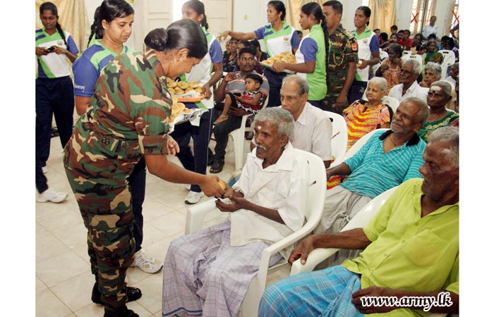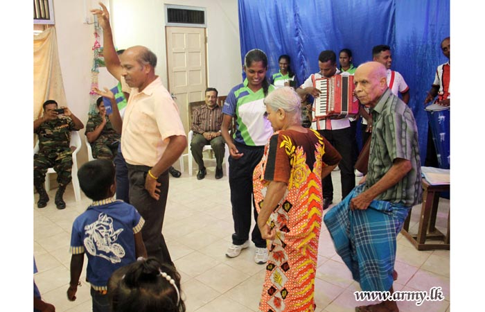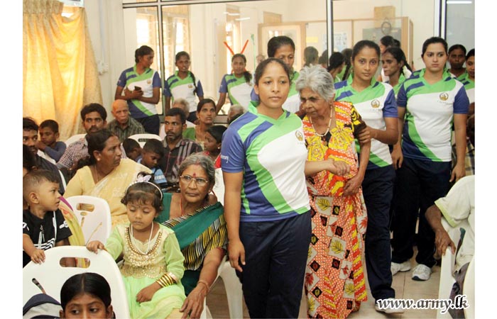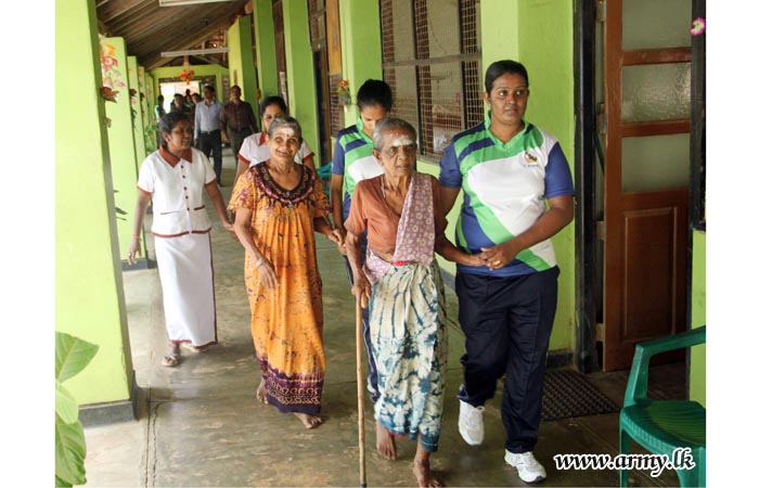 Inmates at Kaithady ‘Shanthi Nilayam’ State Home for Adults recently had a day of entertainment and fun when the members of the 7 Sri Lanka Army Women’s Corps (7 SLAWC) of the Security Force Headquarters - Jaffna (SFHQ-J) called at the Home for Adults.
