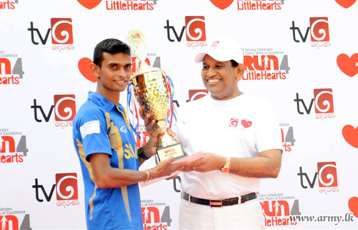 Army athletes who competed in the recent, ‘Derana’ - organized walk and marathon run, named ‘Little Hearts Walk and Marathon’ in aid of ‘Derana’ Little Hearts Project to build a heart hospital for children on Sunday (29) secured prominent wins against hundreds of rivals.