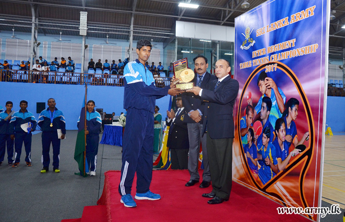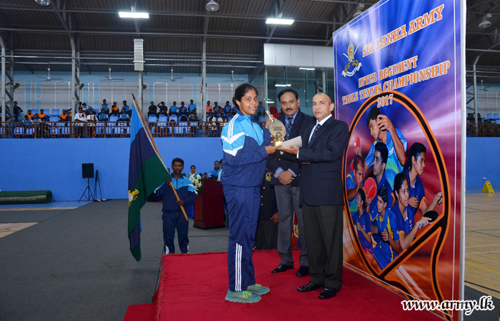 Sri Lanka Signal Corps (SLSC) won the Championship in the recent Inter Regiment Table Tennis Championship 2017, held during 24 - 27 October 2017 at the Sri Lanka Army Physical Training School premises in Panagoda. A large gathering of talented and national rank players from all regiments in the Army took part in the tournament.