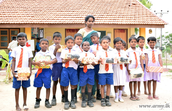 Expanding the multiplicity of community-oriented welfare roles, members of the 6 (Volunteer) Sri Lanka Army Women’s Corps (SLAWC) of the Security Force Headquarters - Kilinochchi (SFHQ-KLN) volunteered to offer 87 pairs of shoes and socks to the value of Rs 62,600/= to selected students at Ramakrishnam Primary School at Barathipuram.