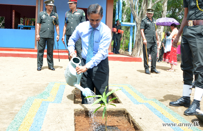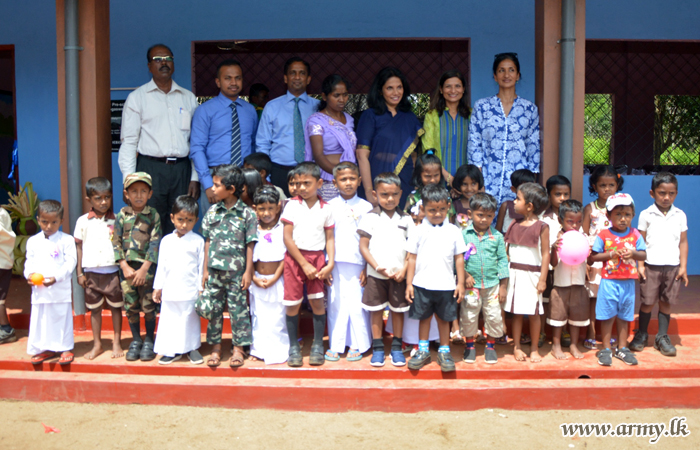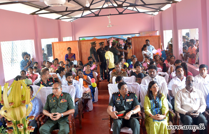 One more social welfare programme, organized by the troops of the Security Force Headquarters - Wanni (SFHQ-W) with the financial sponsorship of Hemas Lanka PLC, gifted the village with a new Early Childhood Development Centre (ECDC), during a simple ceremony at Selalihinigama, Vavuniya on Monday (30).