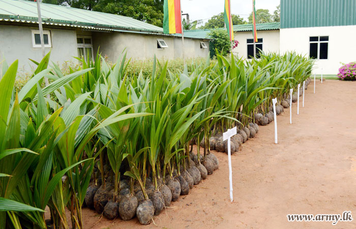 Troops of the 57 Division expect to plant 2500 coconut saplings in the heart of Kilinochchi and surrounding areas while distributing among all respective Brigades and Battalions under command to the 57 Division.
