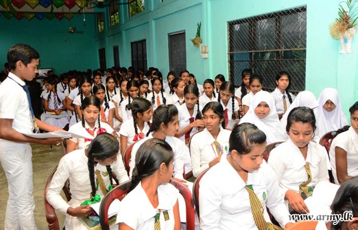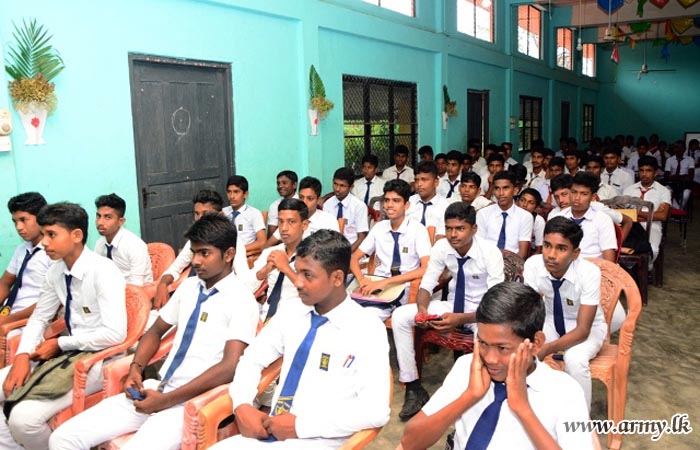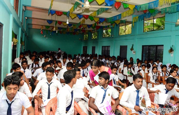 The arrangement organized on a proposal of Major General Aruna Jayasekara, General Officer Commanding (GOC), 22 Division was attended by more than 190 students, drawn from the area.