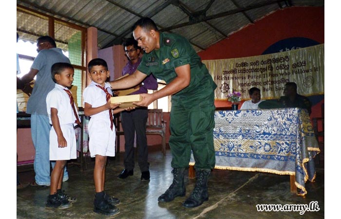 150 school students of low income families, resident in Malvila, Sandunpitiya and Namalgama areas in and around Welikanda and Vakarai received school accessories and educational instruments following the coordination done by the 233 Brigade Headquarters of the SFHQ - E following sponsorship, provided by the Buddhist Society of the People’s Bank.