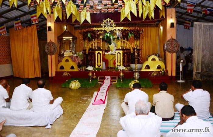 The meritorious act invoked blessings on the motherland, people in Trincomalee and members of armed forces and the Police. On the first day, prior to the inauguration of chanting, General Officer Commanding (GOC), 22 Division, Major General Aruna Jayasekara respectfully carried the relic casket to be placed in the beautifully-decorated Pirith Mandapaya (octagon).