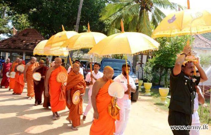 Trincomalee-based troops of the 22 Division under the Security Force Headquarters – East (SFHQ-E) on the eve of the New Year lent their full co-operation to conduct the annual ‘Sathi Pirith Pinkama’ (week-long chanting) at Jayasumanarama Raja Maha Vihara, Trincomalee which began on 26 December 2017.