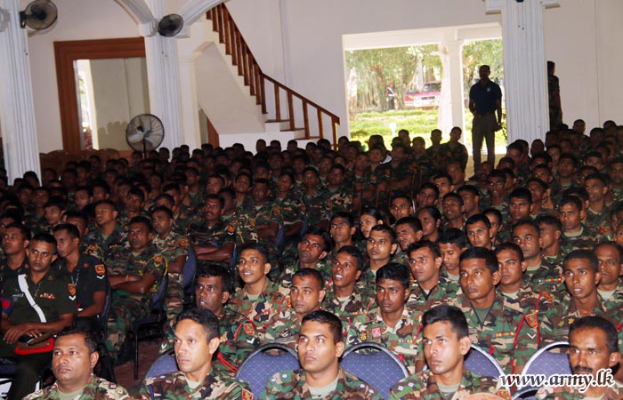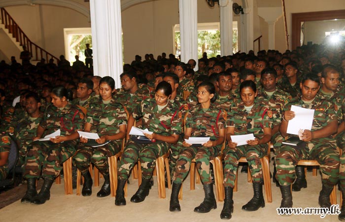 The first session was devoted to the troops in the SFHQ-KLN and its affiliated battalions, Forward Maintenance Area - Kilinochchi and the 66 Division. 30 Officers and 1000 Other Ranks of those formations during the morning session learnt about those STDs. 30 Officers and 1000 Other Ranks of the 57 Division and the 65 Division took part in afternoon session.