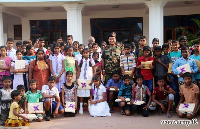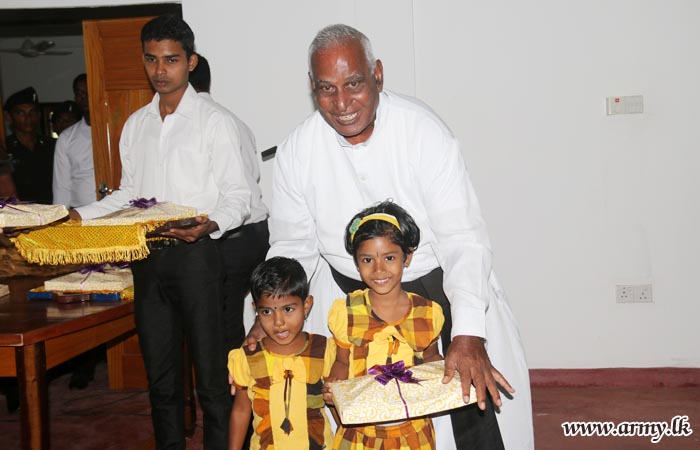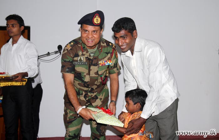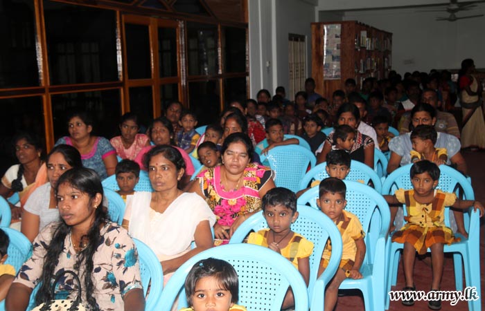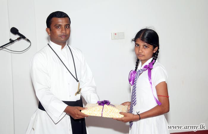 Several Catholic priests in the area, together with Major General Ajith Kariyakarawana, Commander, Security Forces - Kilinochchi (SF-KLN) as the Chief Guest for the occasion joined the distribution of those incentives among 160 pre-school kids during a simple ceremony on Friday (5) at Libara Library premises in Kilinochchi.