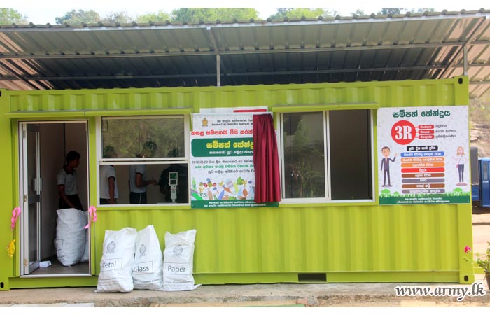 Ministry of Megapolis and Western Development, extending its support for disposal of garbage collecting at the Panagoda Army Cantonment installed a waste-collection centre inside with possibilities for recycling garbage.