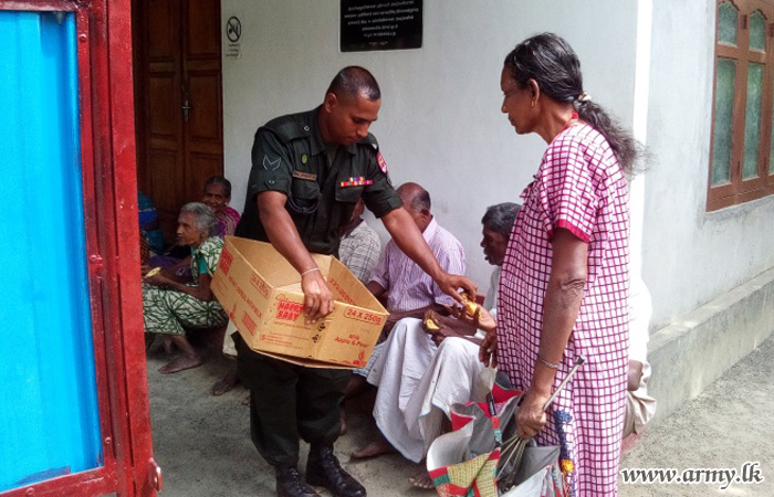 In addition, 2 (V) Sri Lanka Light Infantry (SLLI) troops of the 512 Brigade offered lunch packets to more than 100 families and donated a stock of school accessories to 20 more needy children in the same area with the cooperation, extended by All Ranks in the 512 Brigade on voluntary basis.