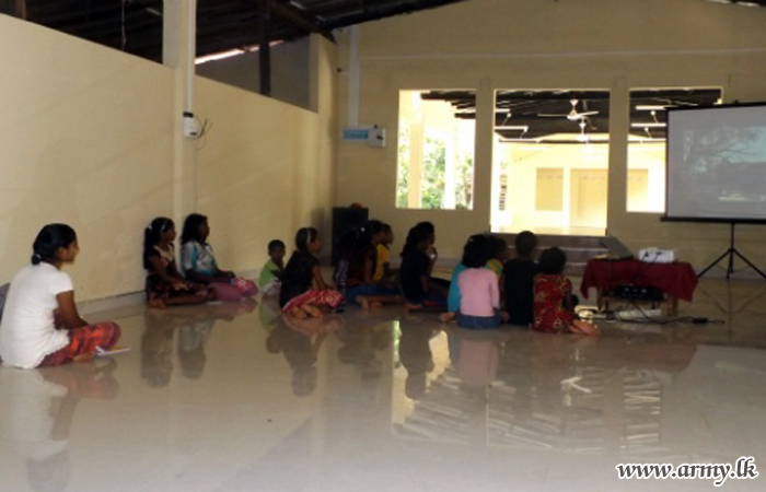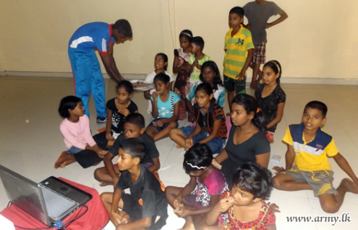 Meanwhile, 15(V) Sri Lanka National Guard (SLNG) troops of the 511 Brigade arranged a children’s movie for the inmates at ‘Gnanam’ Children’s Home in Irupalei, Jaffna as an another goodwill act.