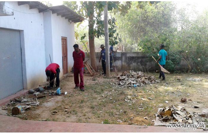 Troops of the 51 Division under the Security Force Headquarters - Jaffna (SFHQ-J) in a ‘Shramadana’ project cleaned ‘Muththumari Amman’ Kovil premises in Jaffna on Sunday (11).