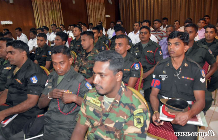 A group of civil employees serving the SFHQ-MLT took part in the workshop, addressed by Provincial Civil Affairs Officer, Mr R.M.N.K Rathnayake who motivated the gathering and listened to their grievances. This is a routine monthly arrangement, put into practice by the SFHQ-MLT considering the value of duty roles of those 642 civil employees in Mullaittivu area.