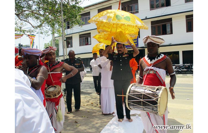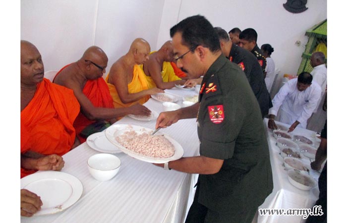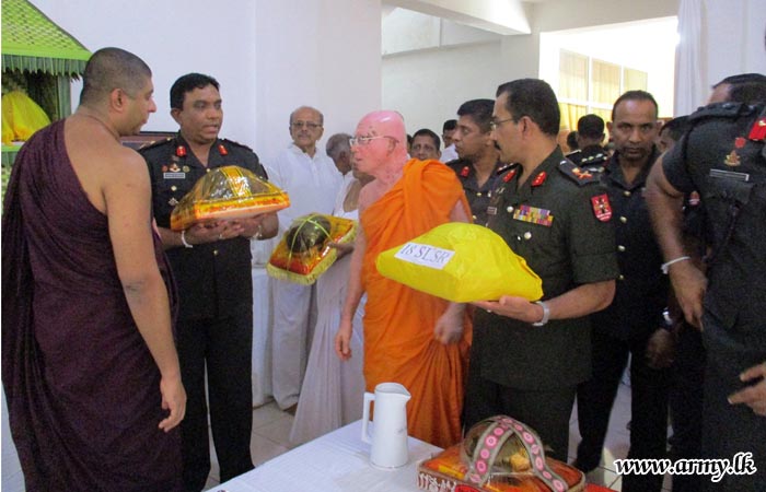Troops of the 51 Division under the Security Force Headquarters - Jaffna (SFHQ-J) cooperated with members of the Maha Sangha in Jaffna for conduct of the customary three-month long alms-giving ceremony of late Ven Meegahajandure Gnanarathana Nayake Thero, Chief Sanghanayake for Northern Province and the Incumbent at Jaffna Sri Naga Viharaya on Monday (19) at Naga Viharaya premises in Jaffna town.