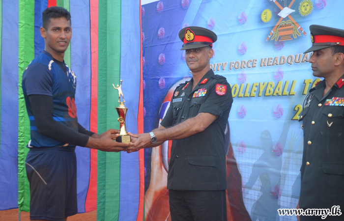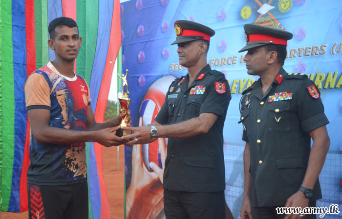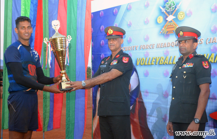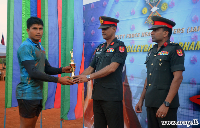 The Volleyball tournament which had 32 teams under command to SFHQ-J was organized by the 511 Brigade, following the guidelines given by the Commander, Security Forces - Jaffna (SF-J), Major General Darshana Hettiarrachchi. It was aimed to improve the sportsmanship of officers/soldiers and develop cohesion among them.