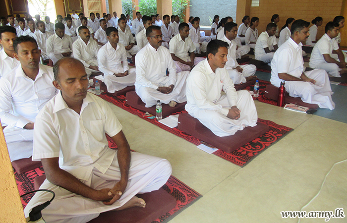 A meditation programme, organized by the Directorate of Psychological Operations to raise spiritual standards and mental peace among Officers and Other Ranks of the armed forces, got underway at Kanduboda, Bavunseth Manasika Sevana Vipassana Bhavana Centre on Wednesday (28) under the leadership of Ven. Diyasenpura Wimala Thero.