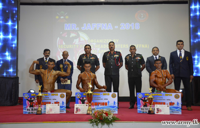 'Mr. Jaffna - 2018' title was clinched by Private R.S.M Arachchi of the 7 Gajaba Regiment while 1st Runners-up slot was secured by Corporal A.M Ajith Bandara of the 5 Vijayabahu Infantry Regiment. The 2nd Runners-up title was secured by Private A.A.R Priyadewa of the 26 Sri Lanka National Guard.