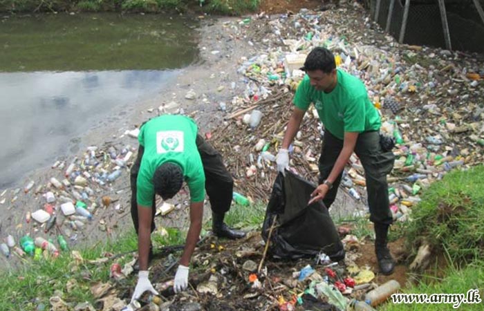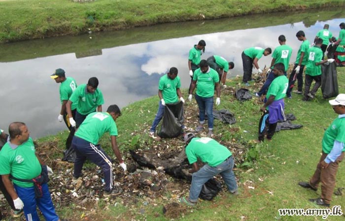 During the day’s cleaning programme, troops of the SFHQ-Cen, on the directions of Major General Rukmal Dias, Commander Security Forces – Central, together with other participants piled up garbage at specific locations and took steps to either bury it or dispose it methodically after separating all pieces of garbage.