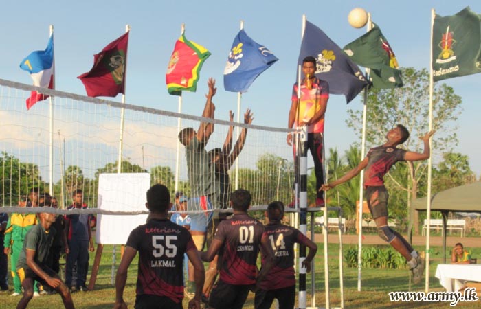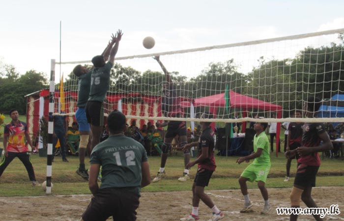 12 Army teams participated in the Volleyball Tournament. The finals for Army teams got underway between the 11 Gajaba Regiment team and the 15 Sri Lanka Sinha Regiment team. 11 Gajaba Regiment team finally emerged victorious after a close tussle.