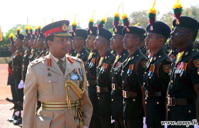 A ceremonial Guard Turnout and a Guard of Honour, presented by troops of the 24 Gemunu Watch (GW) Regiment and 9 Vijayabahu Infantry Regiment (VIR) of the Security Force Headquarters - Kilinochchi (SFHQ-KLN) greeted Major General Ajith Kariyakarawana, the outgoing Commander, Security Forces - Kilinochchi when he formally marked the relinquishment of his office on Tuesday (10) in accordance with military traditions.
