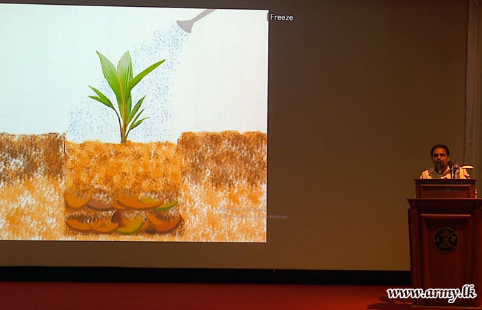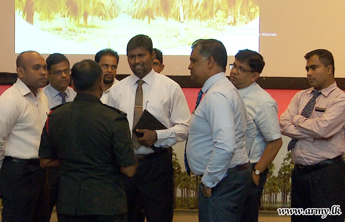Chairman and senior officials of the Coconut Development Board arrived at the Security Forces Headquarters - Jaffna (SFHQ-J) on Tuesday (10) in order to review the progress of the ongoing coconut plantation project, initiated by the SFHQ-J.