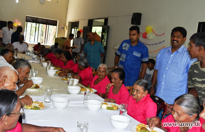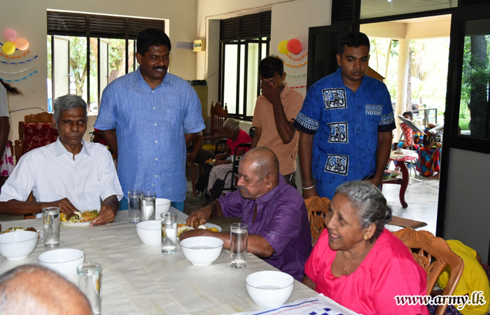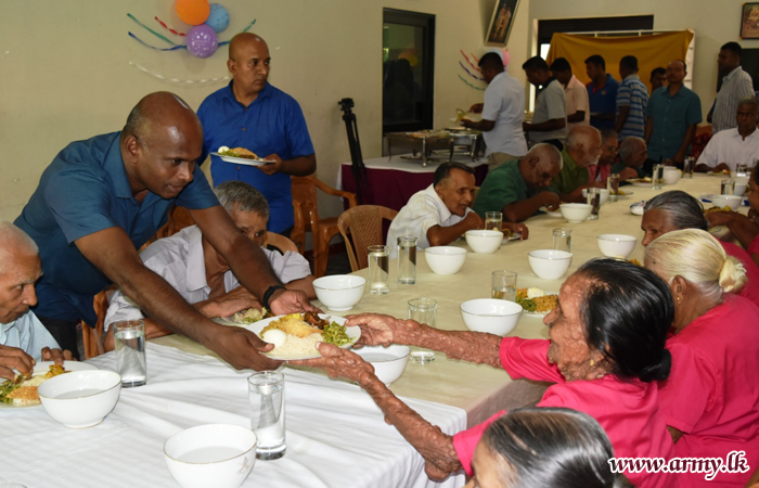 Inmates at ‘Sarana’ Elders’ Home in Ampara were hosted to a delicious lunch by Officers and Other Ranks of the 24 Division in Ampara on account of the Sinhala and Tamil New Year on Saturday (14).