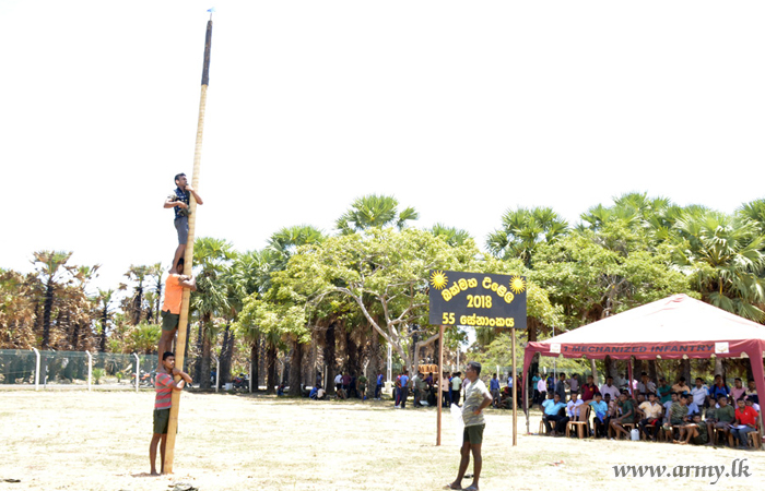 Troops of the 55 Division organized their Sinhala and Tamil New Year festival to celebrate the dawn of the New Year at the 55 Division playground on Saturday (7) under the guidance of Brigadier Jayantha Gunaratne, General Officer Commanding, 55 Division.