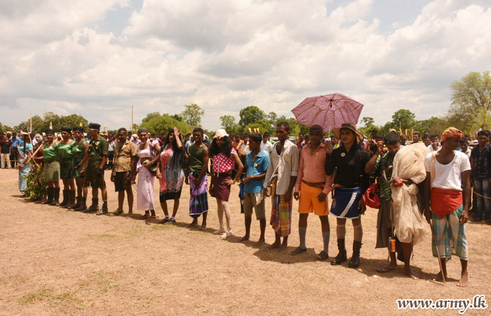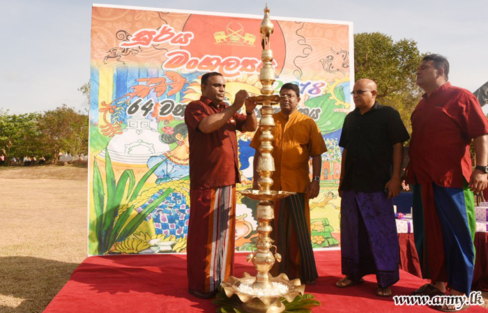 The typical 'Soorya Mangallaya' of the 64 Division was aimed at further promoting spirits of goodwill, reconciliation, ethnic harmony and peaceful co-existence that brings about the birth of new hopes and best wishes. It was arranged on the directions of Brigadier Jayanath Jayaweera, General Officer Commanding, 64 Division with the blessings of Major General Dushyantha Rajaguru, Commander, Security Forces - Mullaittivu (SF-MLT).